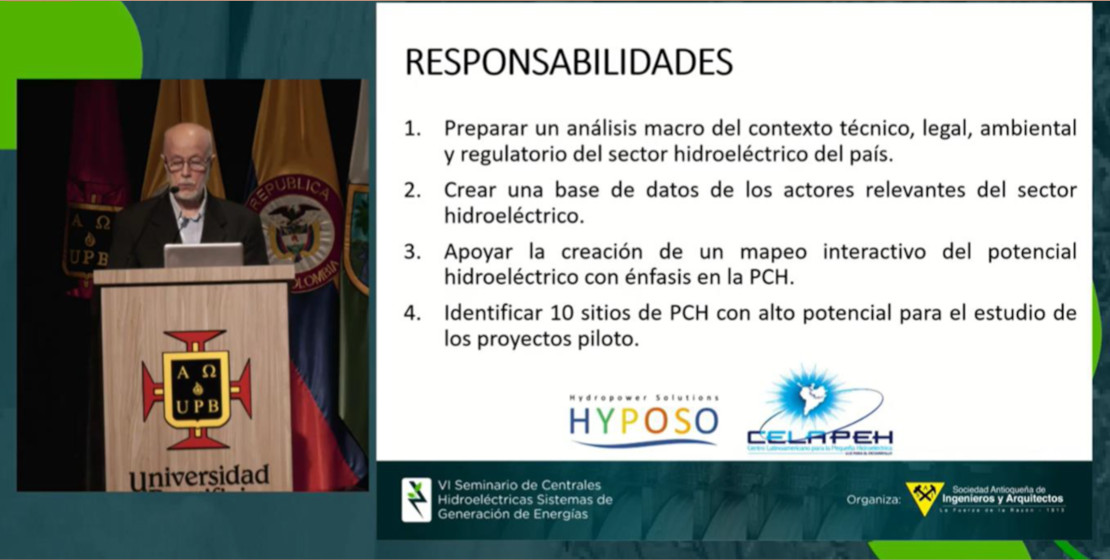 Finishing, Carlos Velasquez (CELAPEH), gave a presentation how CELAPEH is contributing to the HYPOSO project in Colombia, explaining the different tasks that are being worked on. He finished his talk to inform the participants about CELAPEH's mission, ending with a call to create a dedicated Colombian Association of Actors and Producers of small hydropower.